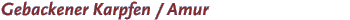 Vom ausgenommenen, geschuppten Karpfen/Amur den Kopf entfernen, halbieren und in Portionsstücke schneiden. Säubern, salzen, pfeffern und gut mit Zitronensaft beträufeln. Mindestens eine Stunde ziehen lassen. In einer Pfanne 1 EL Butterschmalz oder Öl erhitzen. Die gut abgetropften Karpfenstücke in Mehl wenden und goldbraun ca. 15-20 Minuten braten. |